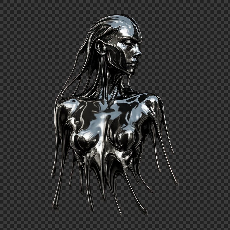 PNG Futuristic metallic abstract female figure. https://www.rawpixel.com/image/24578164/png-futuristic-metallic-abstract-female-figureView license
