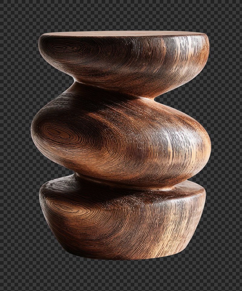 PNG Elegant wooden twisted stool design. https://www.rawpixel.com/image/21562186/png-elegant-wooden-twisted-stool-designView license