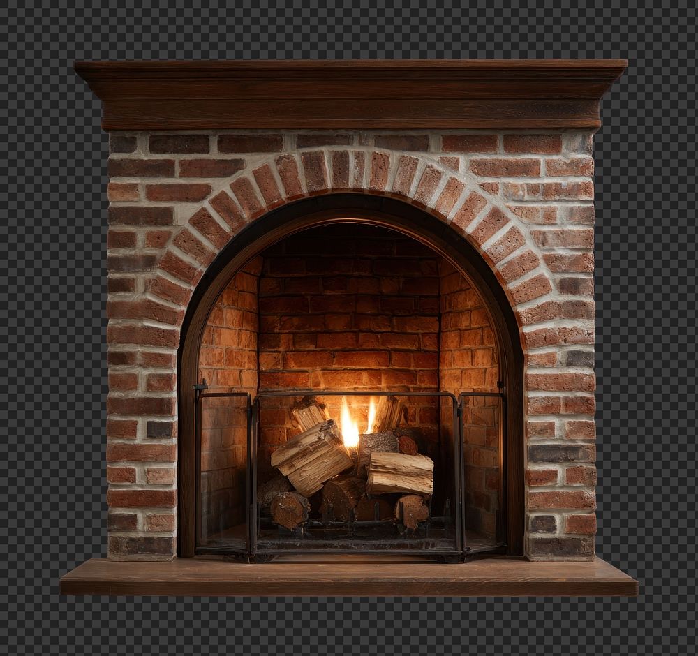 PNG Cozy rustic brick fireplace ambiance. https://www.rawpixel.com/image/24021427/png-cozy-rustic-brick-fireplace-ambianceView license