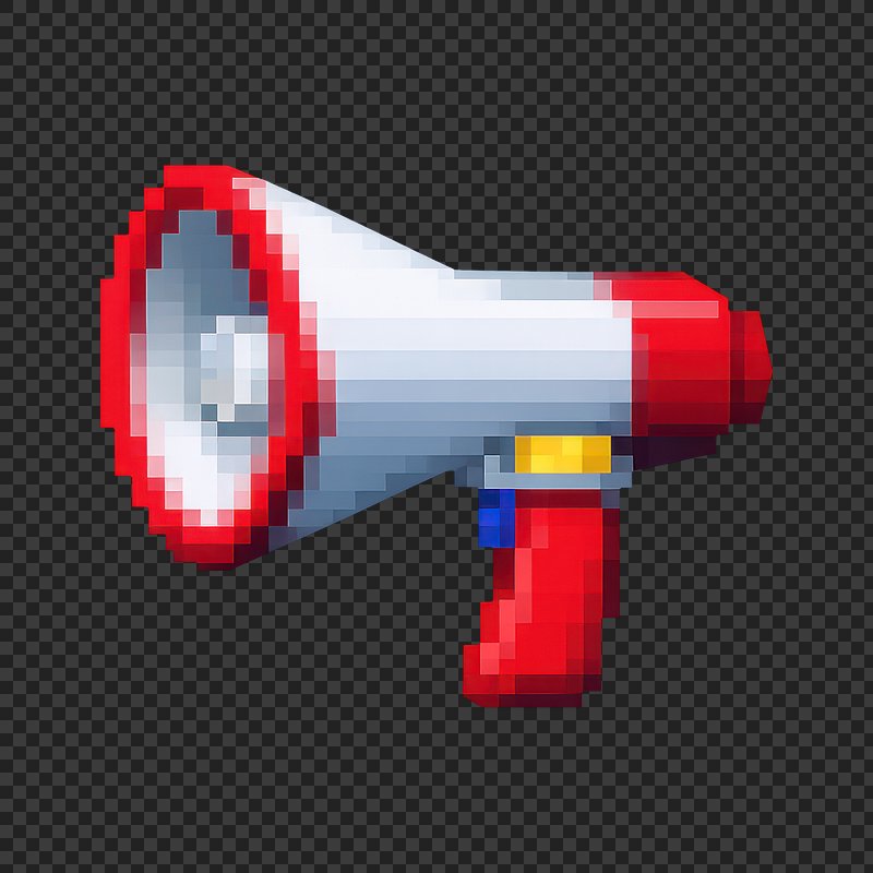 PNG Pixelated megaphone illustration art https://www.rawpixel.com/image/25893973/png-pixelated-megaphone-illustration-artView license