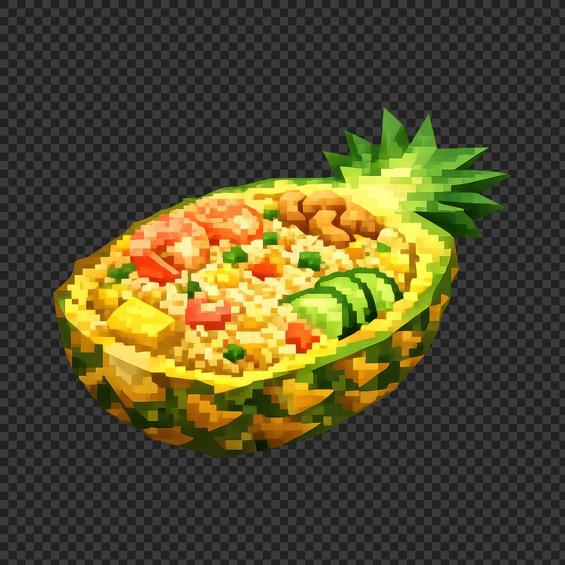 PNG Pixelated pineapple fried rice illustration. https://www.rawpixel.com/image/25894046/png-pixelated-pineapple-fried-rice-illustrationView license