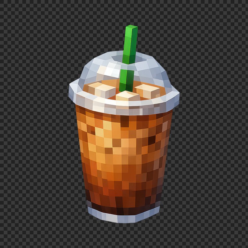PNG Pixelated iced coffee drink illustration. https://www.rawpixel.com/image/25894191/png-pixelated-iced-coffee-drink-illustrationView license