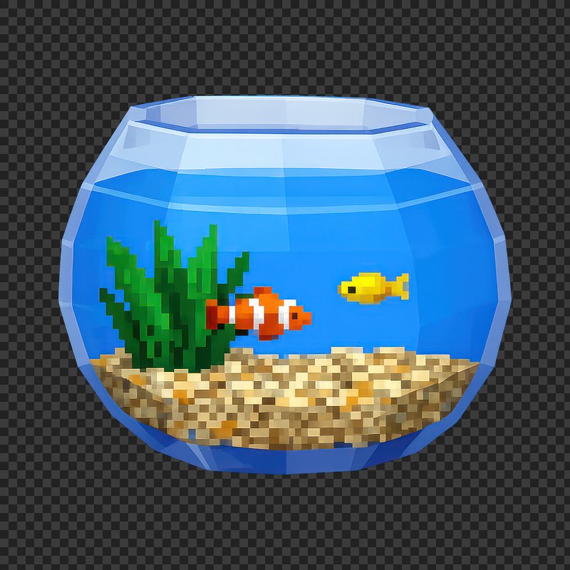PNG Pixelated fishbowl with colorful fish. https://www.rawpixel.com/image/25894407/png-pixelated-fishbowl-with-colorful-fishView license