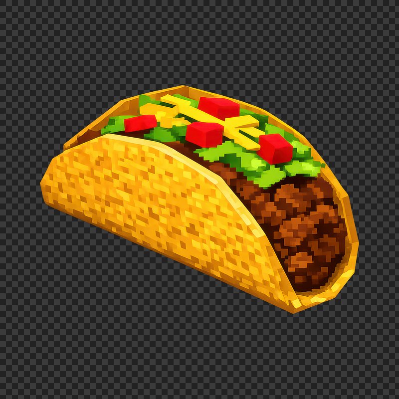 PNG Pixelated taco with vibrant toppings. https://www.rawpixel.com/image/25894585/png-pixelated-taco-with-vibrant-toppingsView license