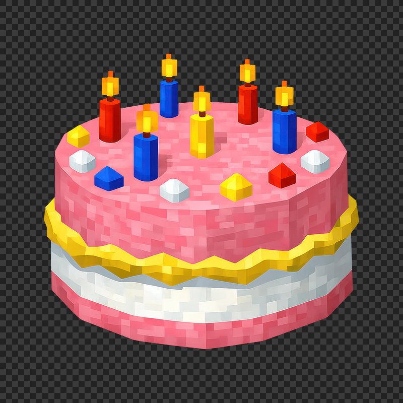 PNG Pixelated cake with colorful candles. https://www.rawpixel.com/image/25894506/png-pixelated-cake-with-colorful-candlesView license