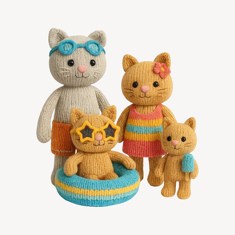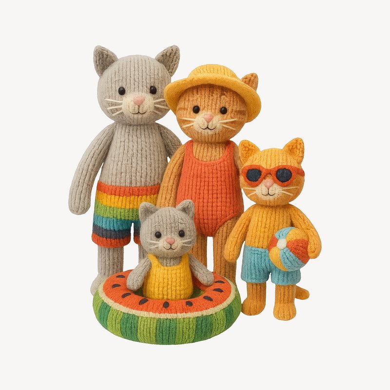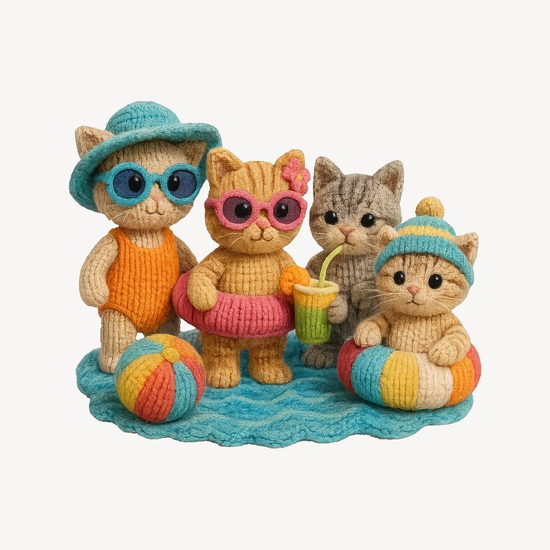 PNG Cute knitted cats beach fun https://www.rawpixel.com/image/24478729/png-cute-knitted-cats-beach-funView license