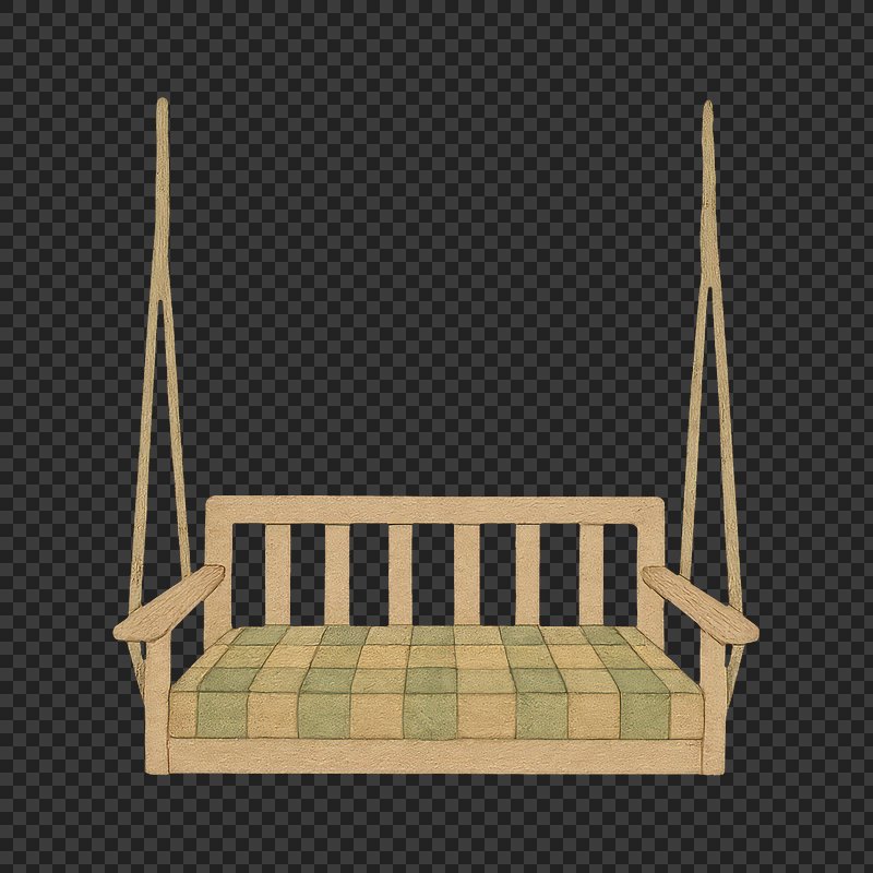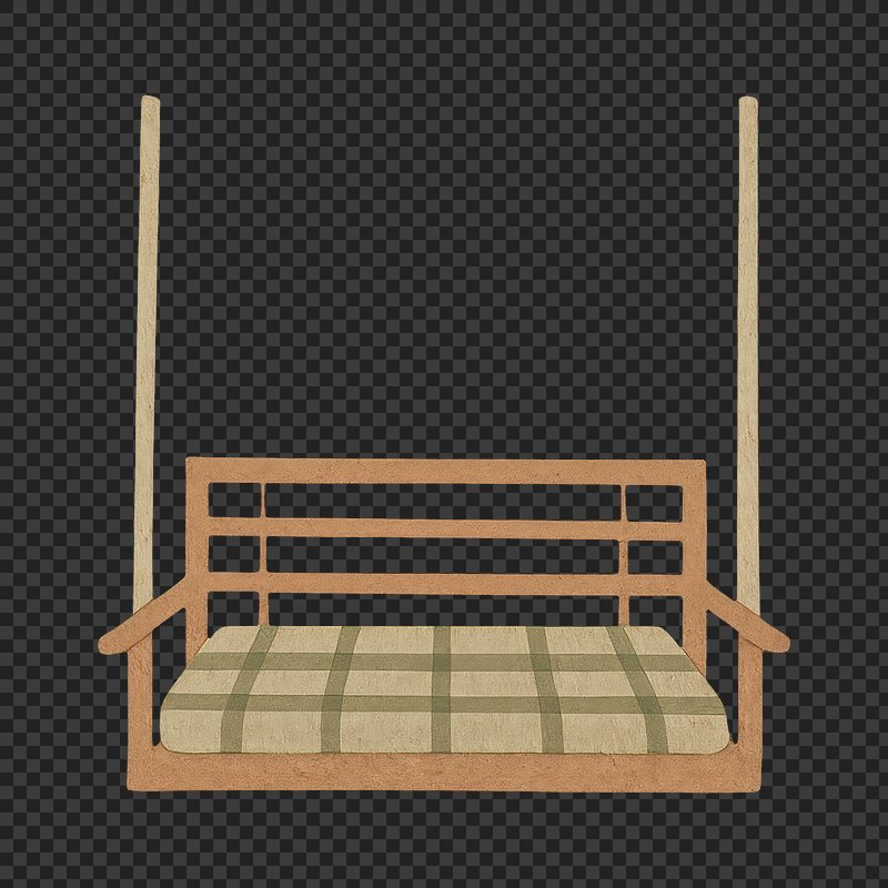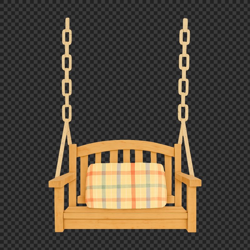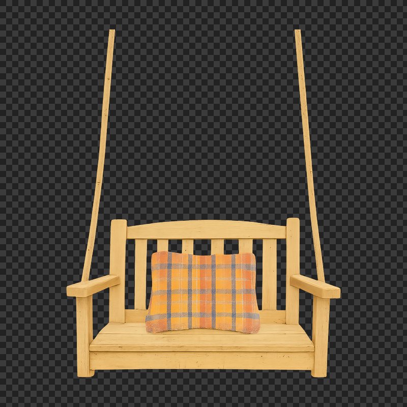 PNG Wooden swing with plaid cushion. https://www.rawpixel.com/image/22212712/png-wooden-swing-with-plaid-cushionView license