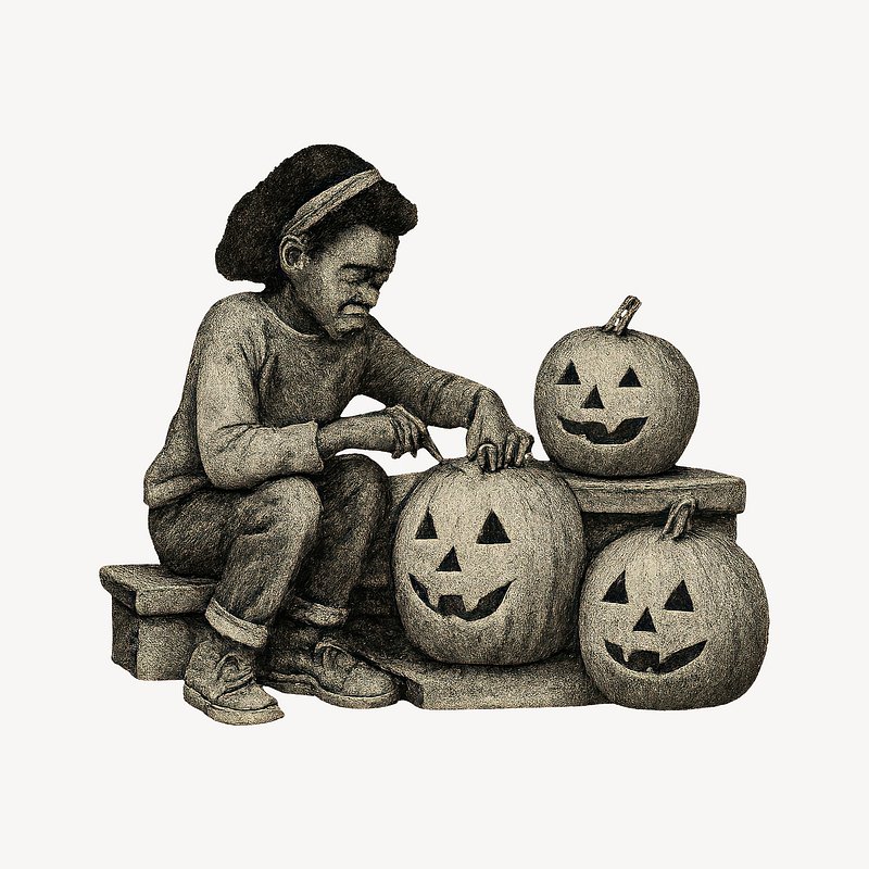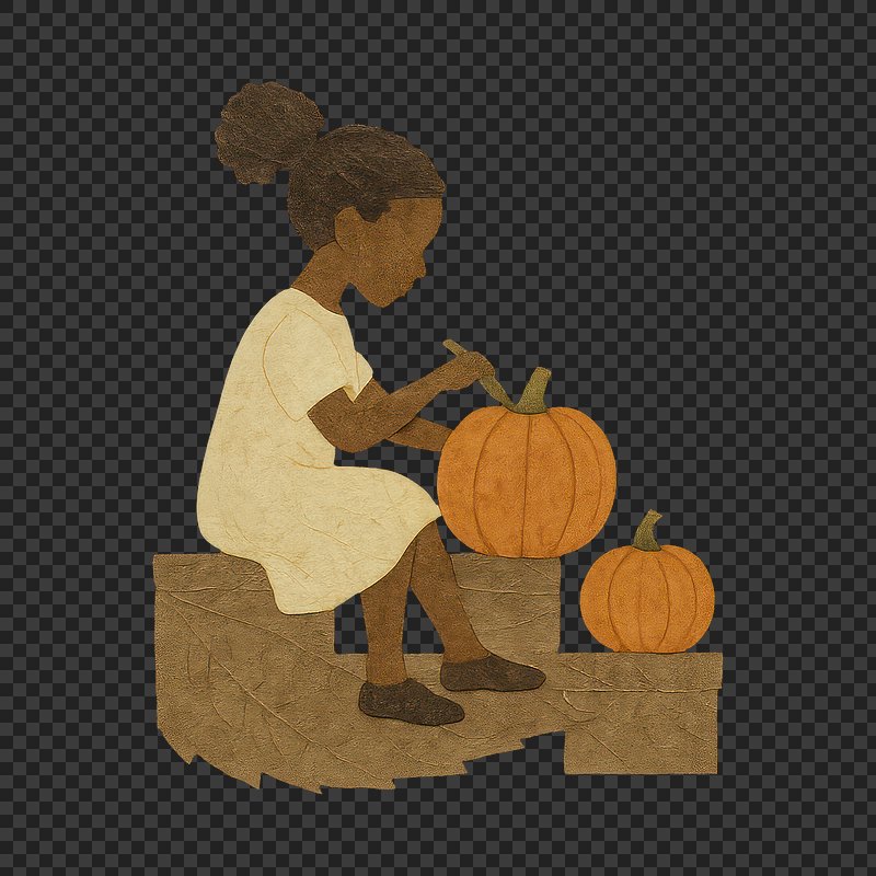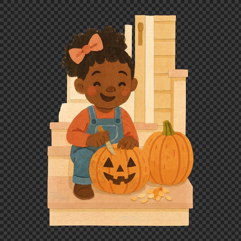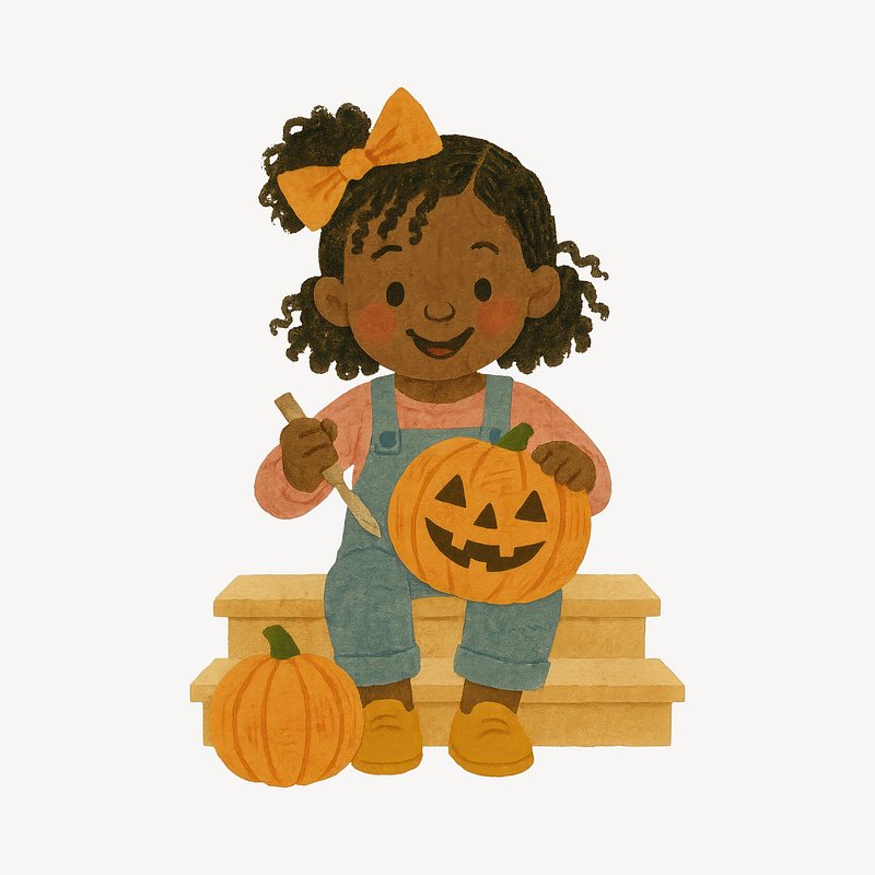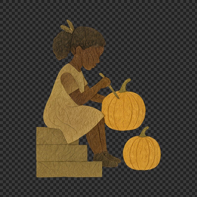 Child carving pumpkin illustration. https://www.rawpixel.com/image/22913356/child-carving-pumpkin-illustrationView license