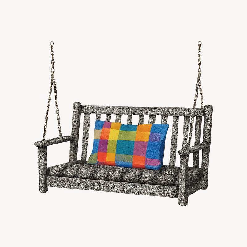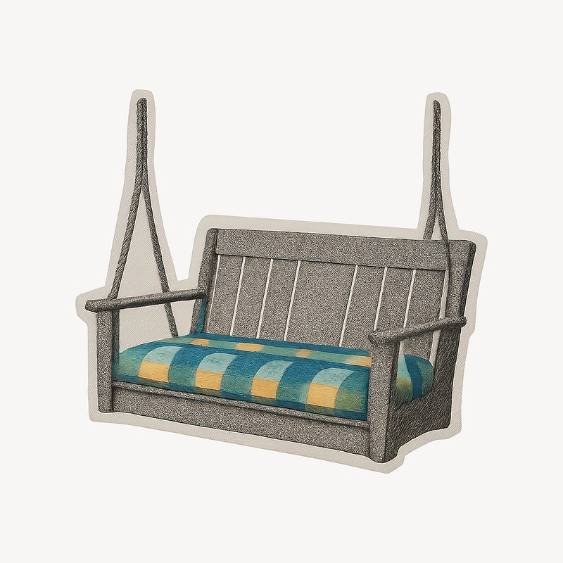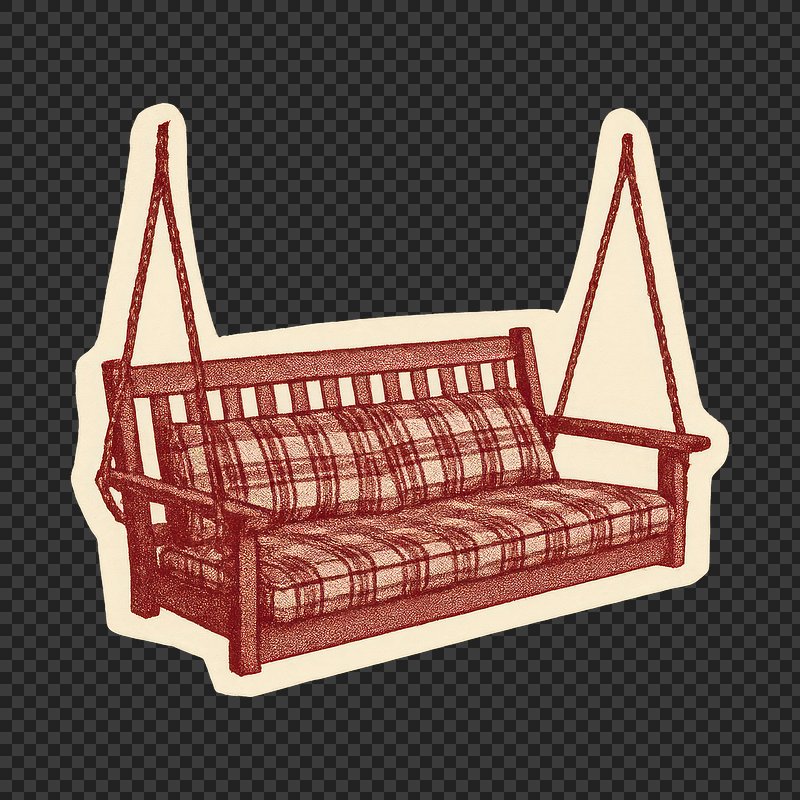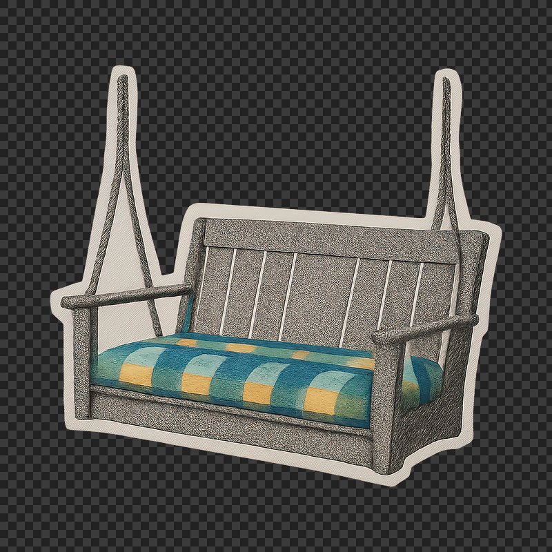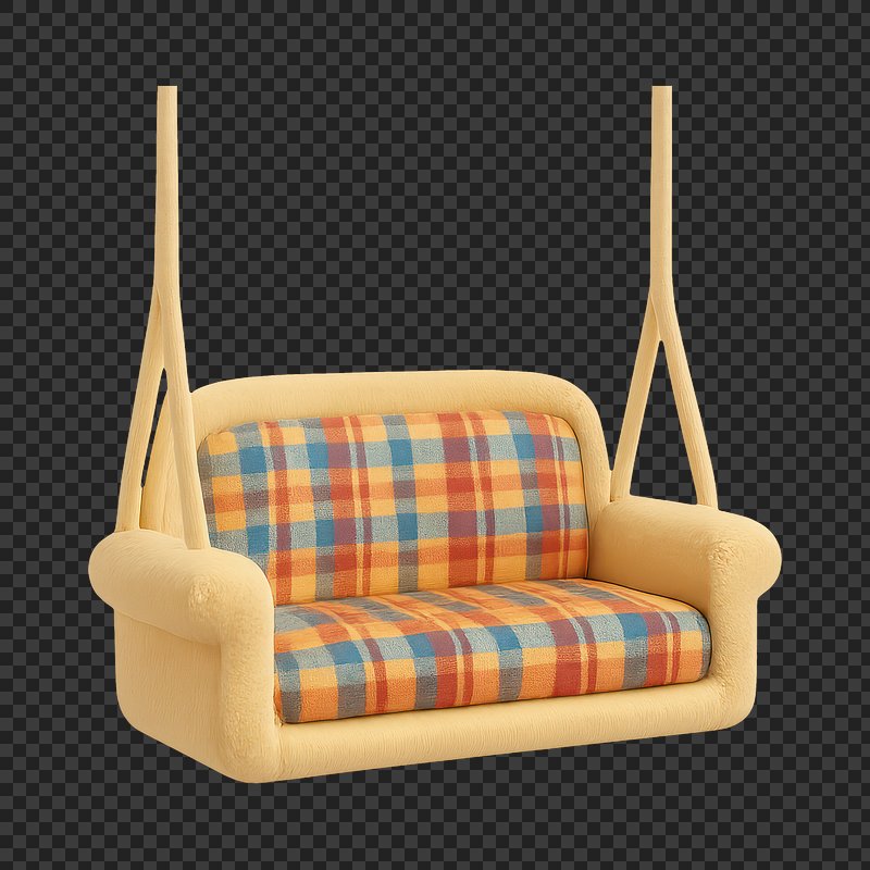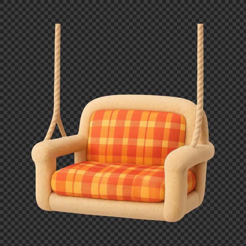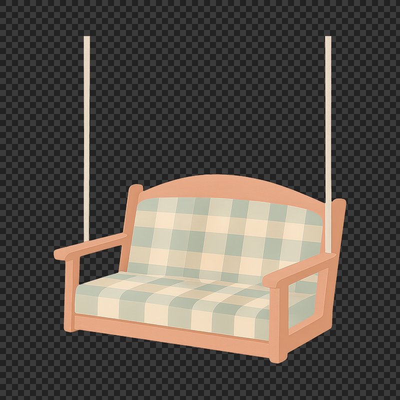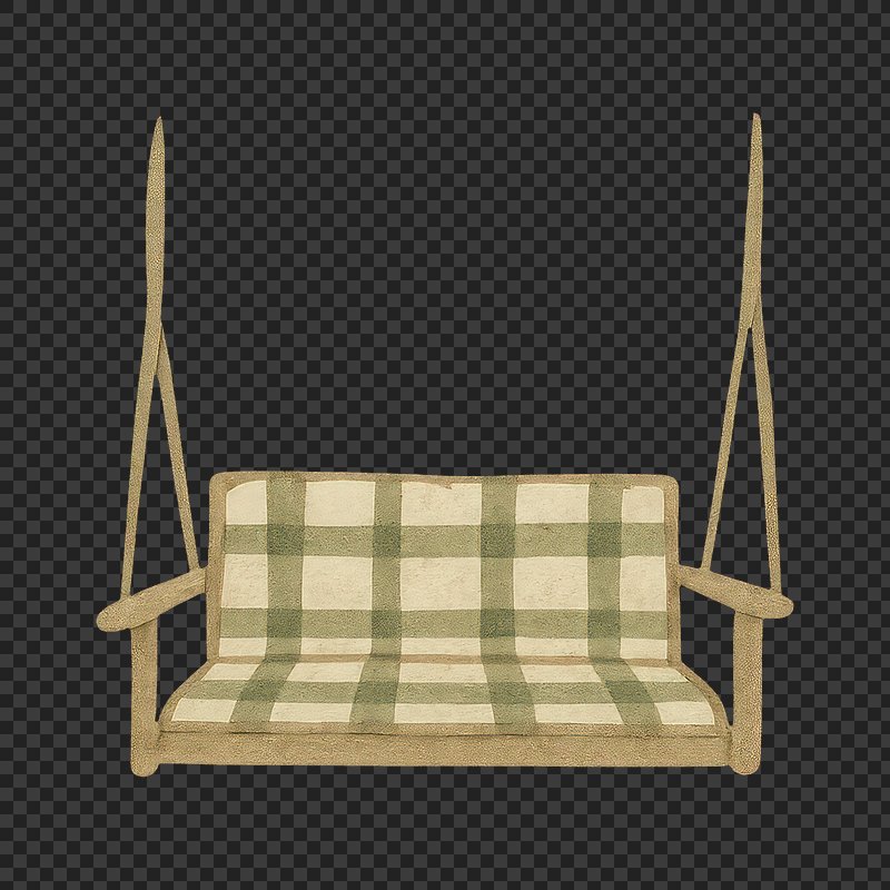 PNG Cozy swing with plaid cushion. https://www.rawpixel.com/image/24172907/png-cozy-swing-with-plaid-cushionView license