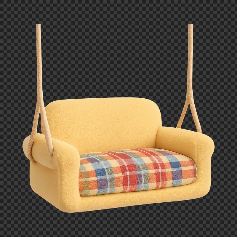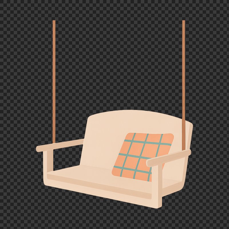 PNG Minimalist swing with plaid cushion. https://www.rawpixel.com/image/24172867/png-minimalist-swing-with-plaid-cushionView license