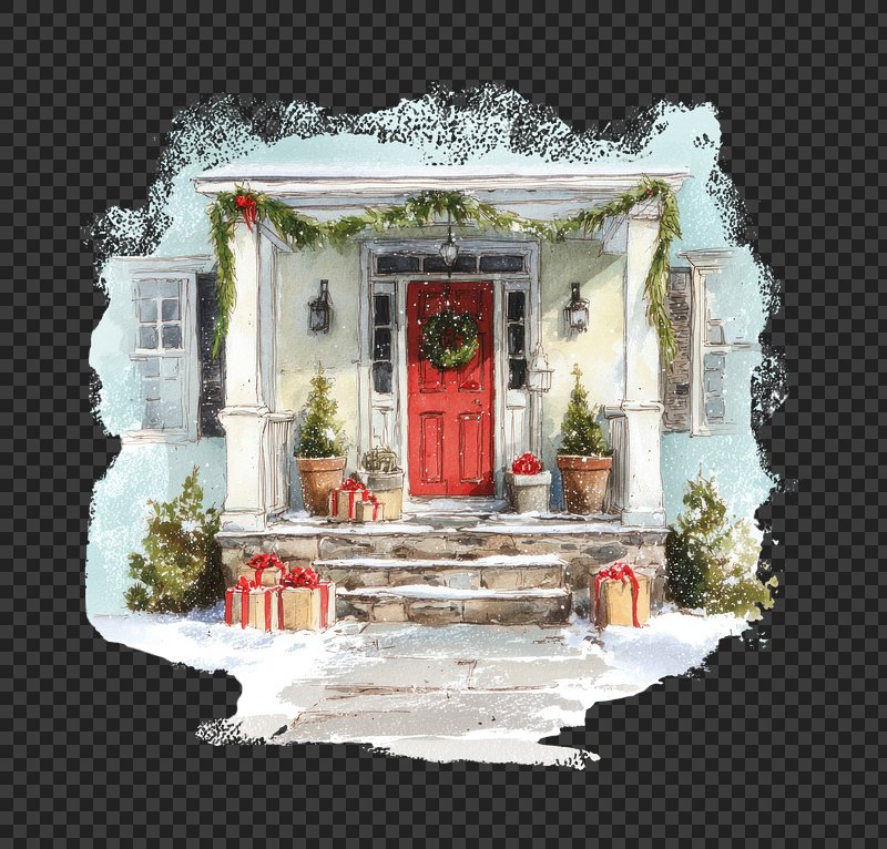 PNG Cozy festive winter entrance illustration. https://www.rawpixel.com/image/24020160/png-cozy-festive-winter-entrance-illustrationView license