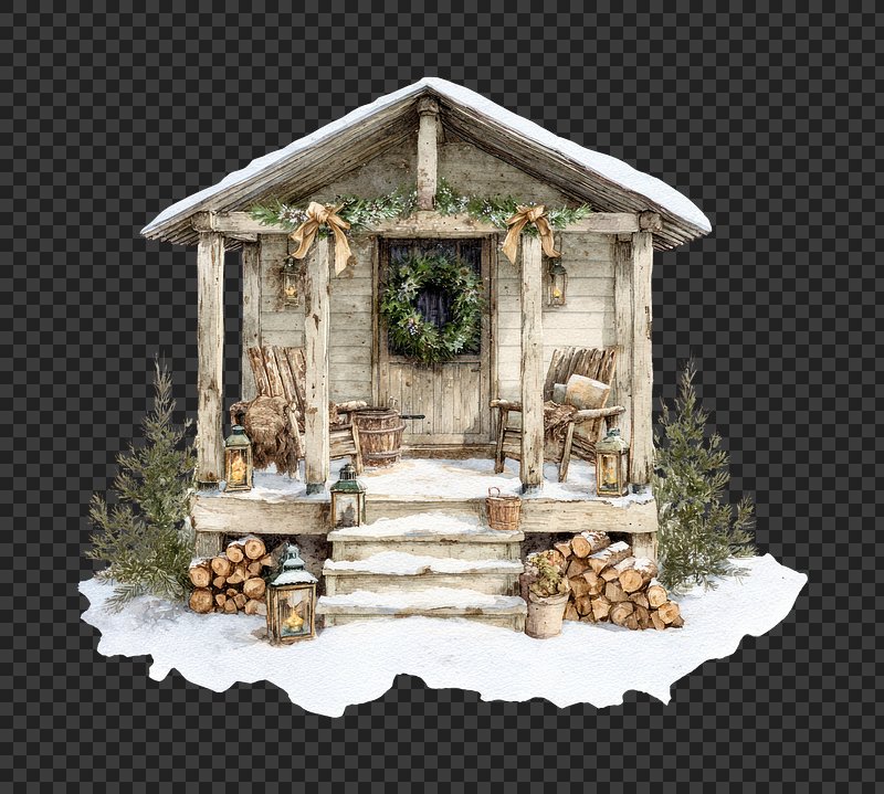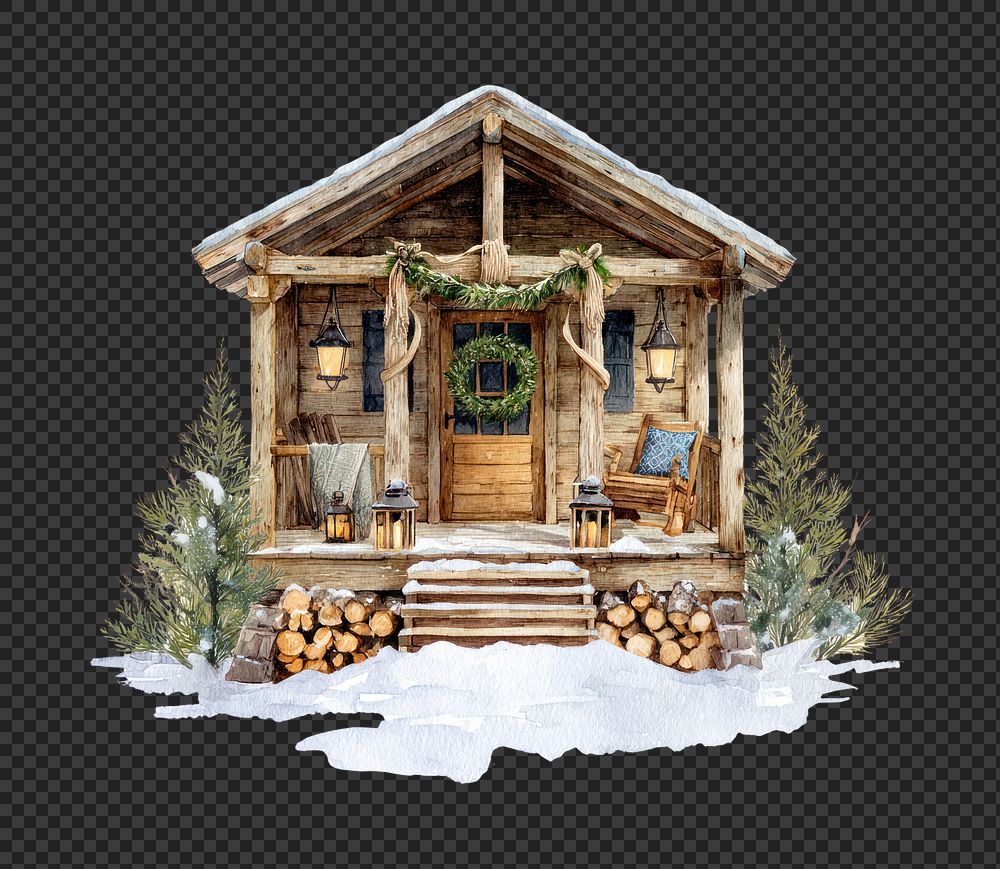 PNG Rustic cabin with winter decor. https://www.rawpixel.com/image/24021740/png-rustic-cabin-with-winter-decorView license
