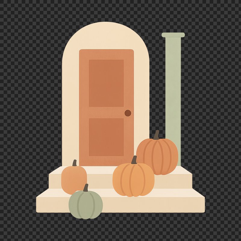 PNG Autumn-themed door with pumpkins. https://www.rawpixel.com/image/20510303/png-autumn-themed-door-with-pumpkinsView license