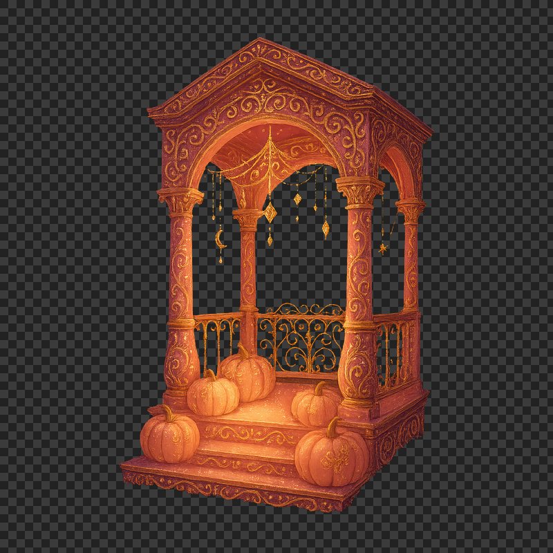 PNG Ornate gazebo with pumpkins illustration. https://www.rawpixel.com/image/24055091/png-ornate-gazebo-with-pumpkins-illustrationView license