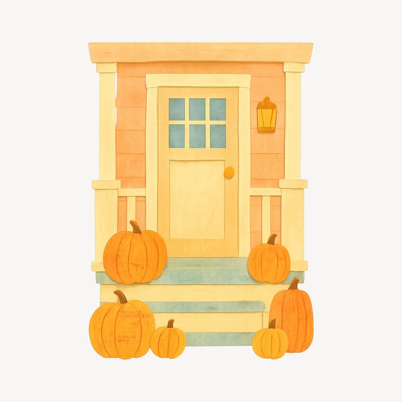 Vintage porch with pumpkins illustration. https://www.rawpixel.com/image/22266164/vintage-porch-with-pumpkins-illustrationView license