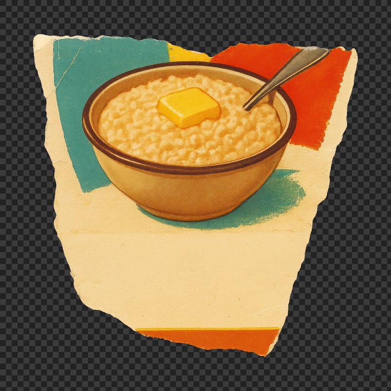 PNG Retro oatmeal illustration with butter. https://www.rawpixel.com/image/24400634/png-retro-oatmeal-illustration-with-butterView license