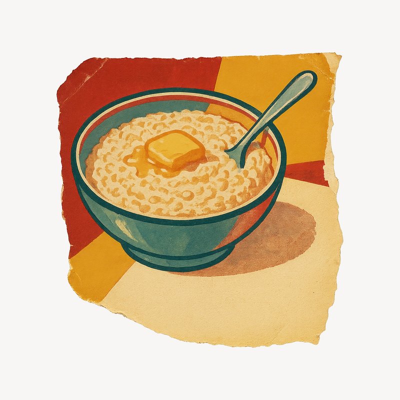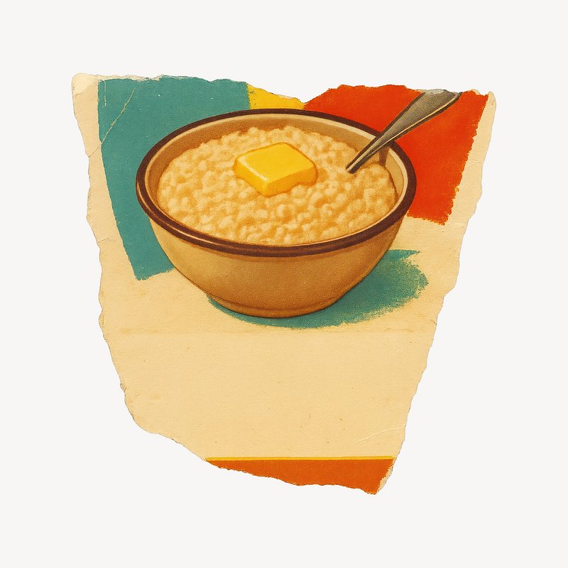 Retro oatmeal illustration with butter. https://www.rawpixel.com/image/24568049/retro-oatmeal-illustration-with-butterView license