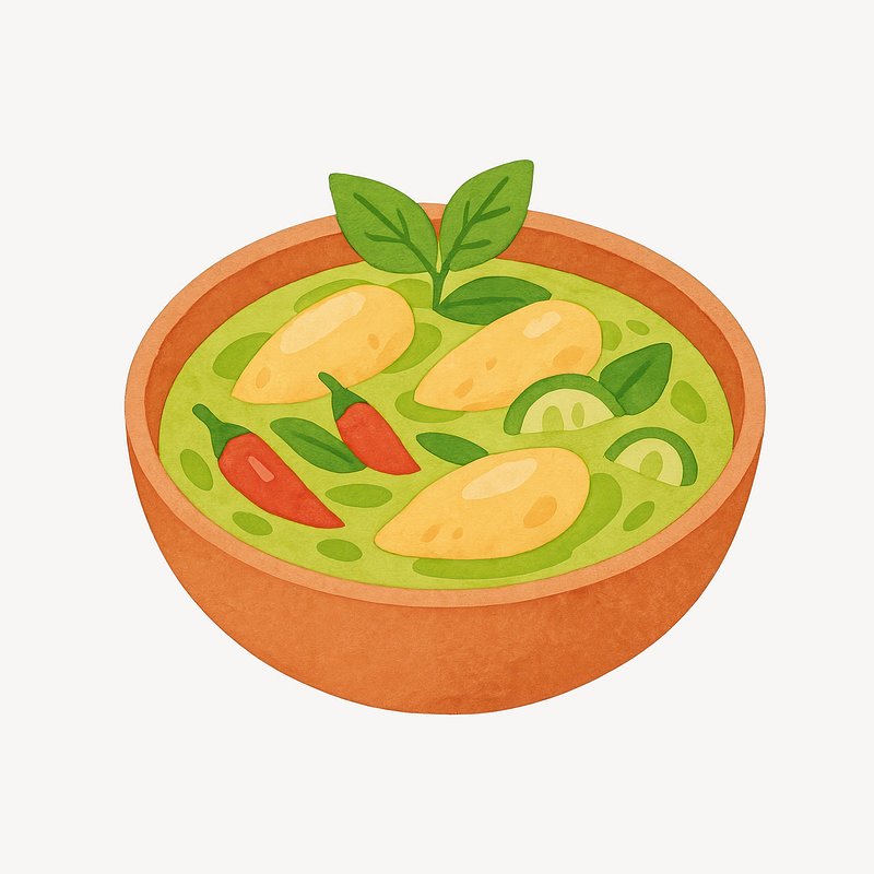 Vibrant Thai green curry illustration. https://www.rawpixel.com/image/19250241/vibrant-thai-green-curry-illustrationView license