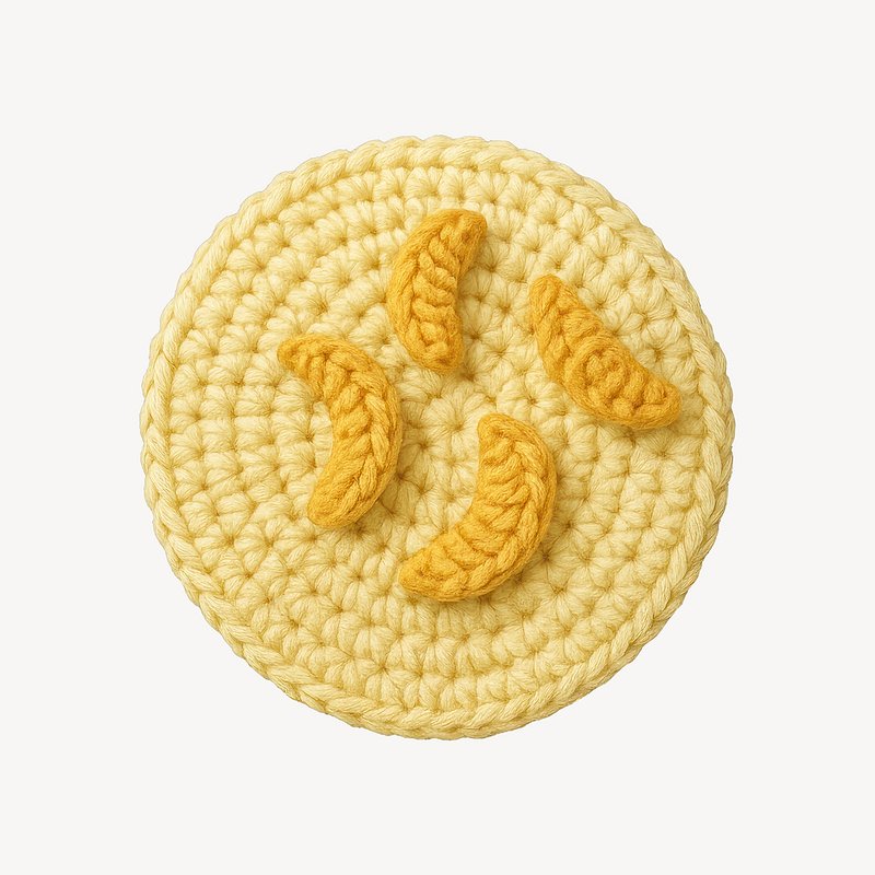 PNG Crocheted dumplings on circular mat. https://www.rawpixel.com/image/22996459/png-crocheted-dumplings-circular-matView license