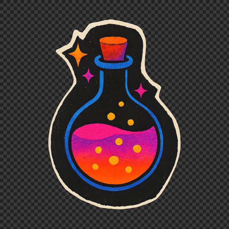 Colorful potion bottle illustration. https://www.rawpixel.com/image/24645624/colorful-potion-bottle-illustrationView license