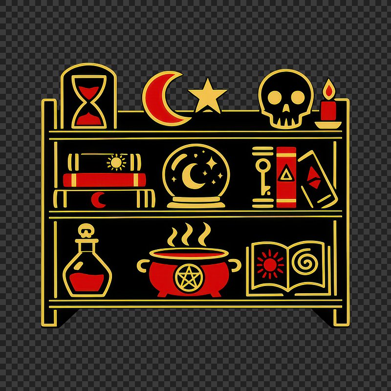 PNG Mystical shelf with magical items. https://www.rawpixel.com/image/25473021/png-mystical-shelf-with-magical-itemsView license