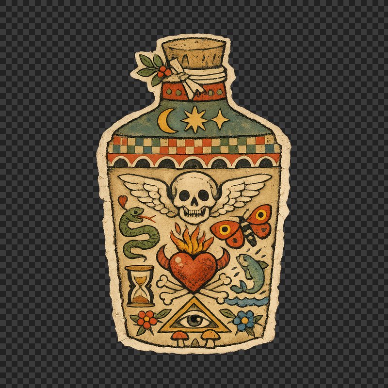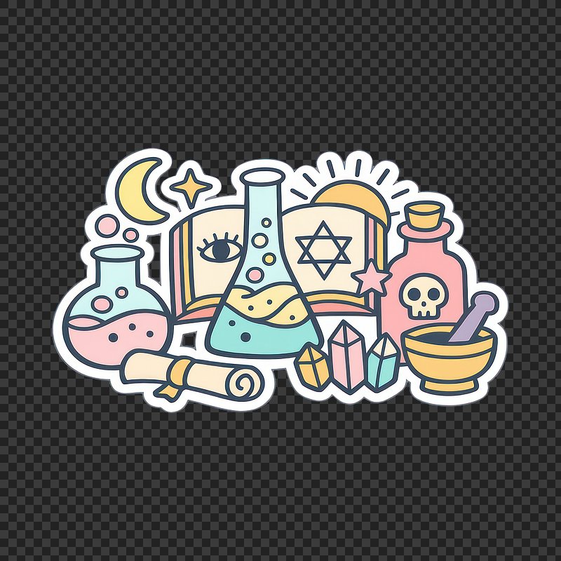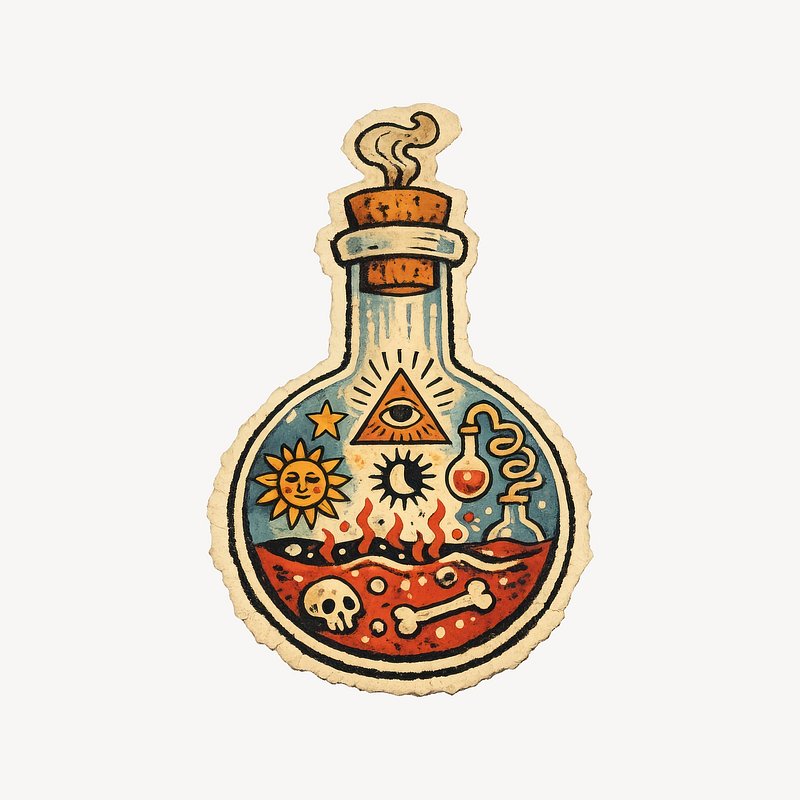 Alchemy potion mystical sticker design. https://www.rawpixel.com/image/25535948/alchemy-potion-mystical-sticker-designView license