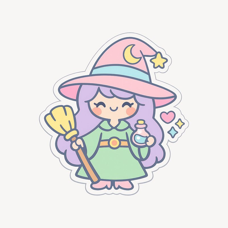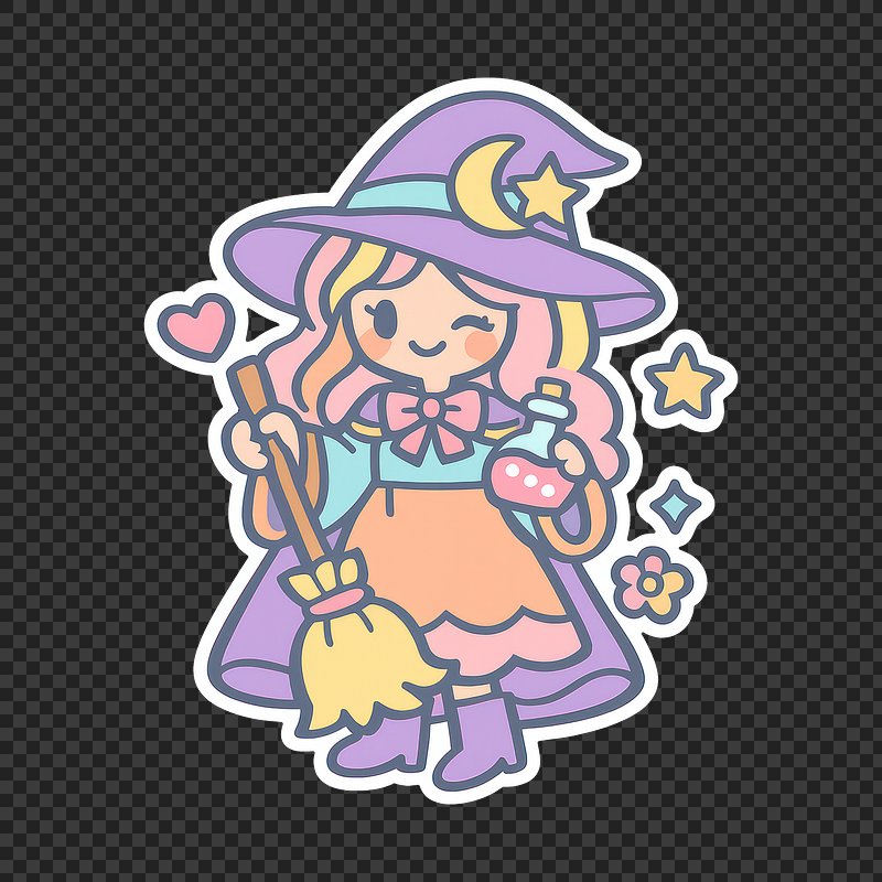 Cute witch cartoon sticker design. https://www.rawpixel.com/image/25770414/cute-witch-cartoon-sticker-designView license