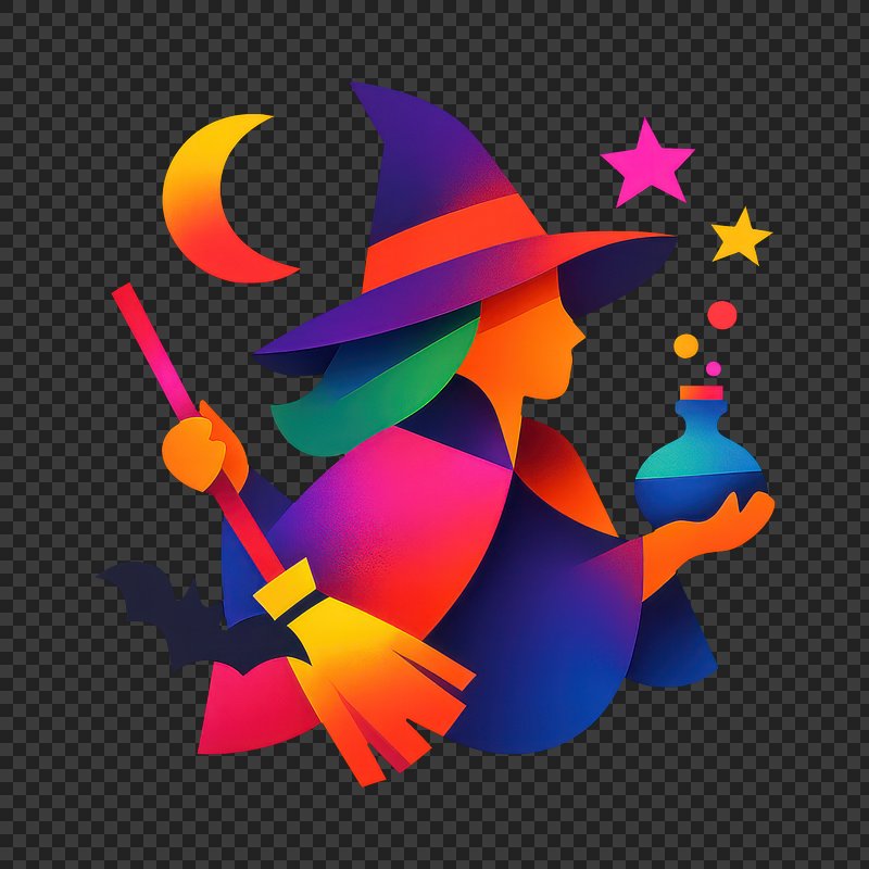 PNG Colorful witch with potion. https://www.rawpixel.com/image/25208043/png-colorful-witch-with-potionView license