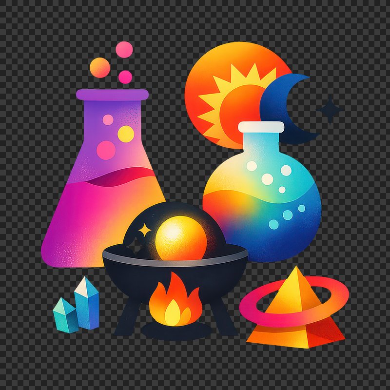 Colorful alchemy tools illustration https://www.rawpixel.com/image/25219197/colorful-alchemy-tools-illustrationView license