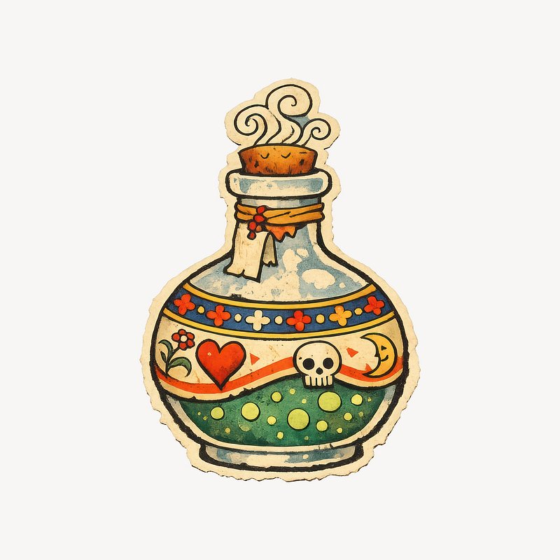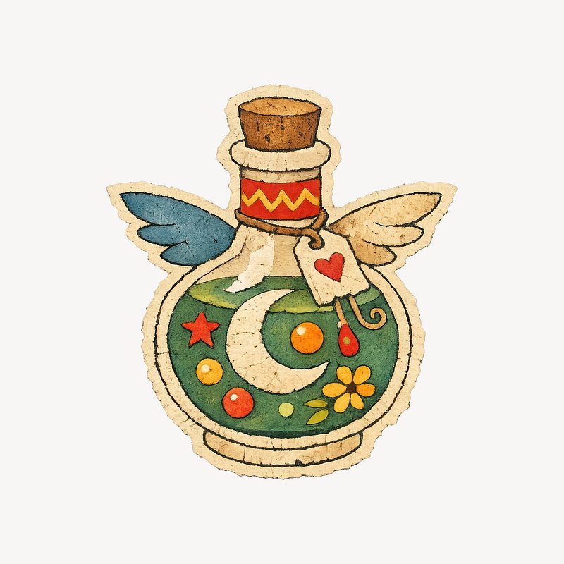 Whimsical potion bottle illustration. https://www.rawpixel.com/image/25533918/whimsical-potion-bottle-illustrationView license