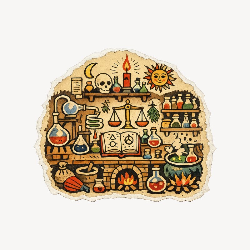 Mystical alchemy apparatus illustration. https://www.rawpixel.com/image/25562799/mystical-alchemy-apparatus-illustrationView license