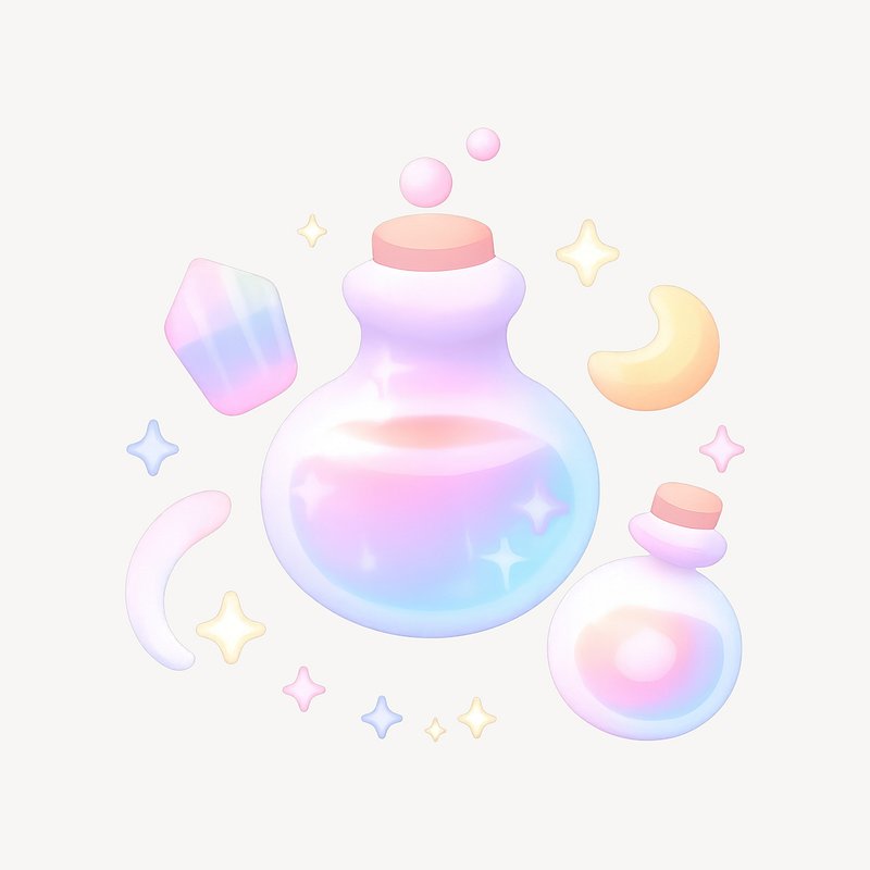Magical pastel potion bottles illustration. https://www.rawpixel.com/image/25303580/magical-pastel-potion-bottles-illustrationView license
