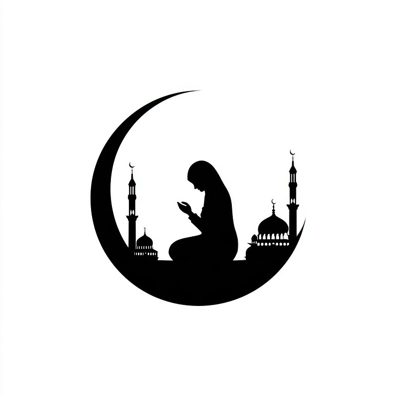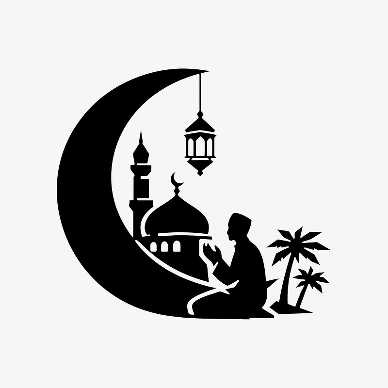 Silhouette prayer mosque crescent illustration. https://www.rawpixel.com/image/24991838/silhouette-prayer-mosque-crescent-illustrationView license