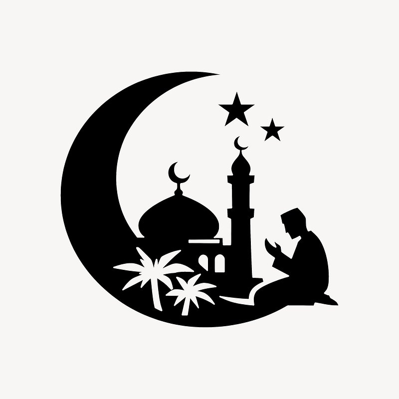 Silhouette prayer crescent mosque illustration. https://www.rawpixel.com/image/24991848/silhouette-prayer-crescent-mosque-illustrationView license