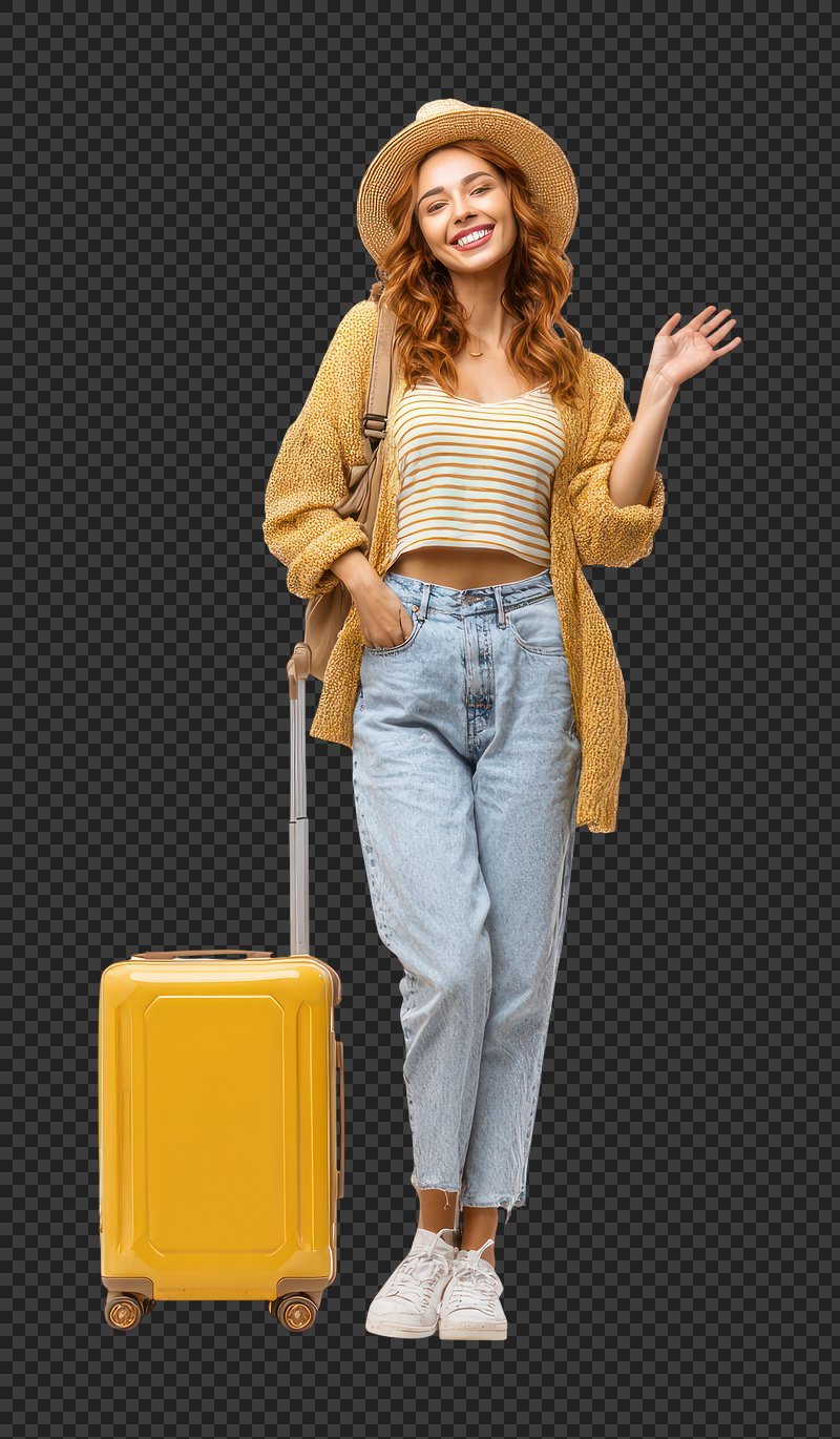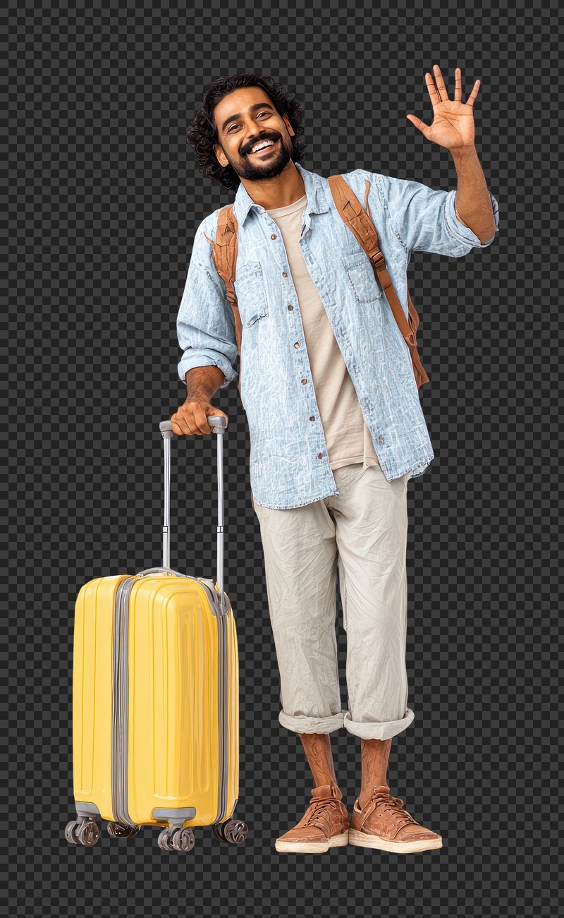 PNG Traveler waving with yellow suitcase. https://www.rawpixel.com/image/25815266/png-traveler-waving-with-yellow-suitcaseView license