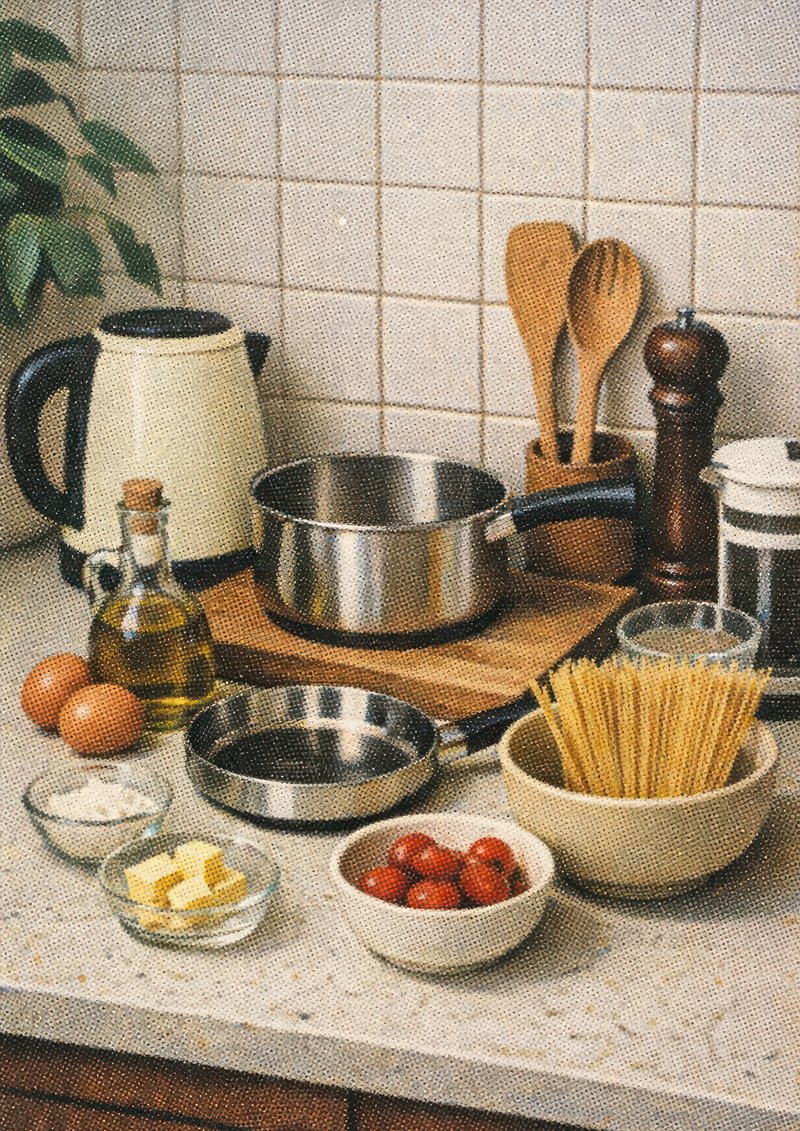 Retro couple cooking pasta illustration. https://www.rawpixel.com/image/24787772/retro-couple-cooking-pasta-illustrationView license