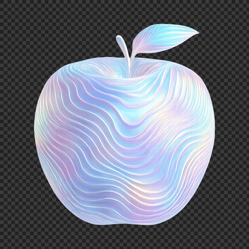 Holographic apple with swirling patterns. https://www.rawpixel.com/image/24675802/holographic-apple-with-swirling-patternsView license