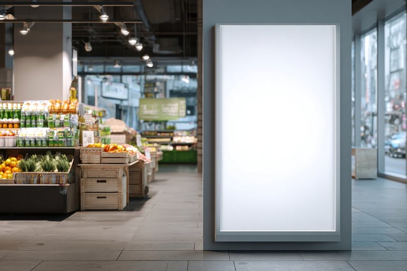 Blank billboard in grocery store. https://www.rawpixel.com/image/23766200/blank-billboard-grocery-storeView license