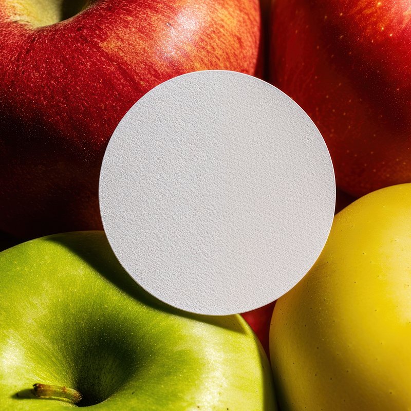 Colorful apples with blank circle. https://www.rawpixel.com/image/23779082/colorful-apples-with-blank-circleView license