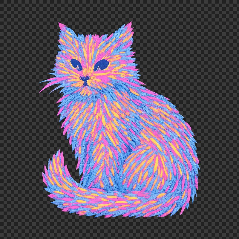 Colorful neon furry cat illustration. https://www.rawpixel.com/image/24675794/colorful-neon-furry-cat-illustrationView license