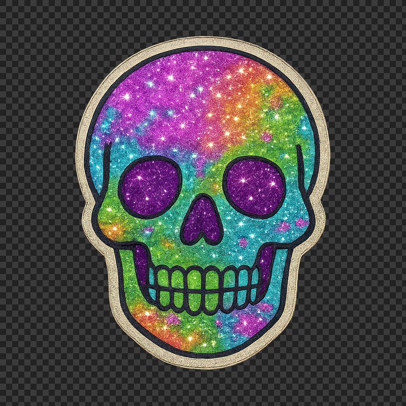 PNG Colorful glitter skull illustration. https://www.rawpixel.com/image/24729607/png-colorful-glitter-skull-illustrationView license