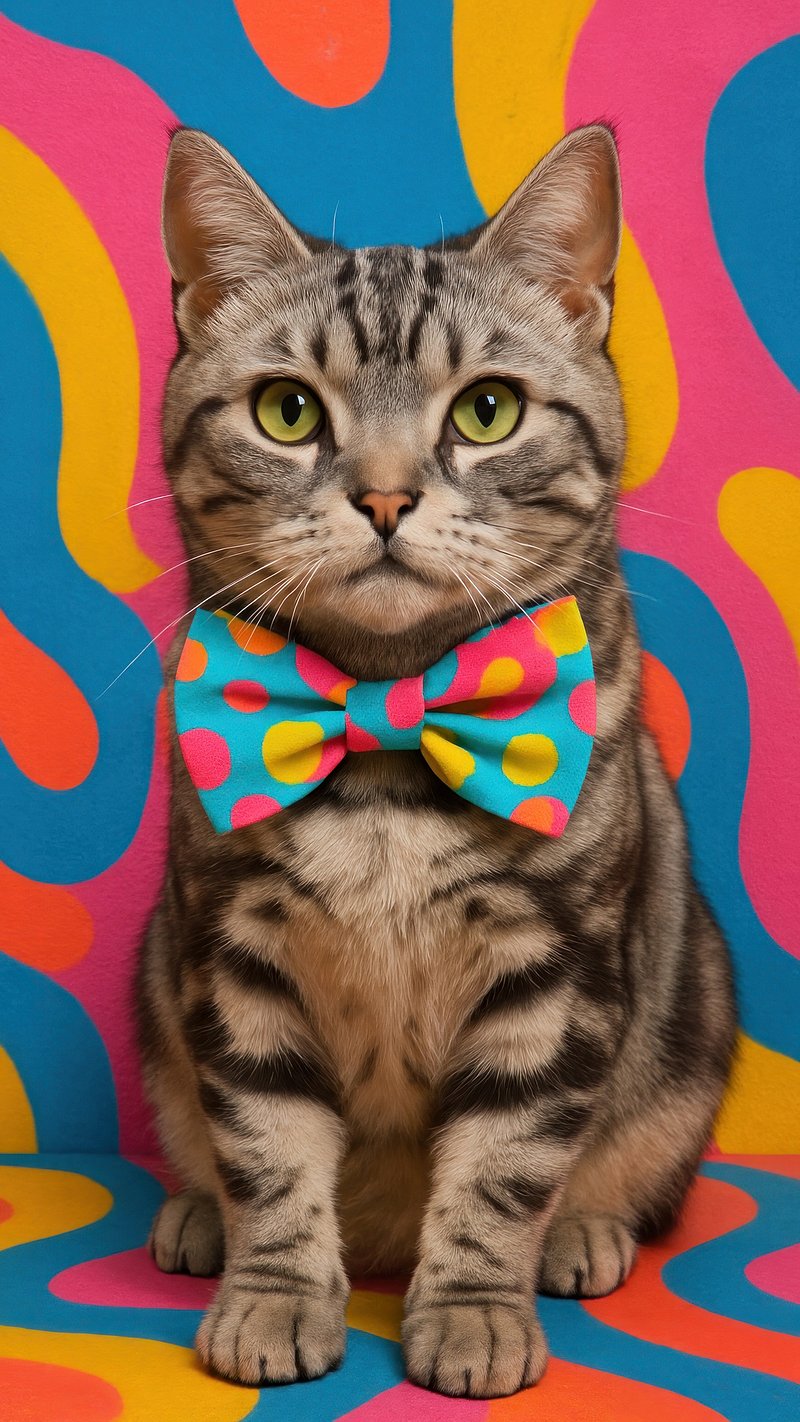 Vibrant cat with colorful bowtie. https://www.rawpixel.com/image/17852983/vibrant-cat-with-colorful-bowtieView license