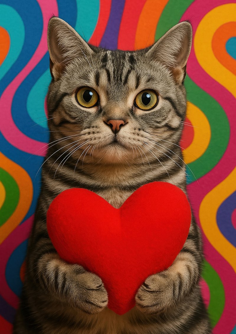 Cat holding heart vibrantly colorful https://www.rawpixel.com/image/18159558/cat-holding-heart-vibrantly-colorfulView license