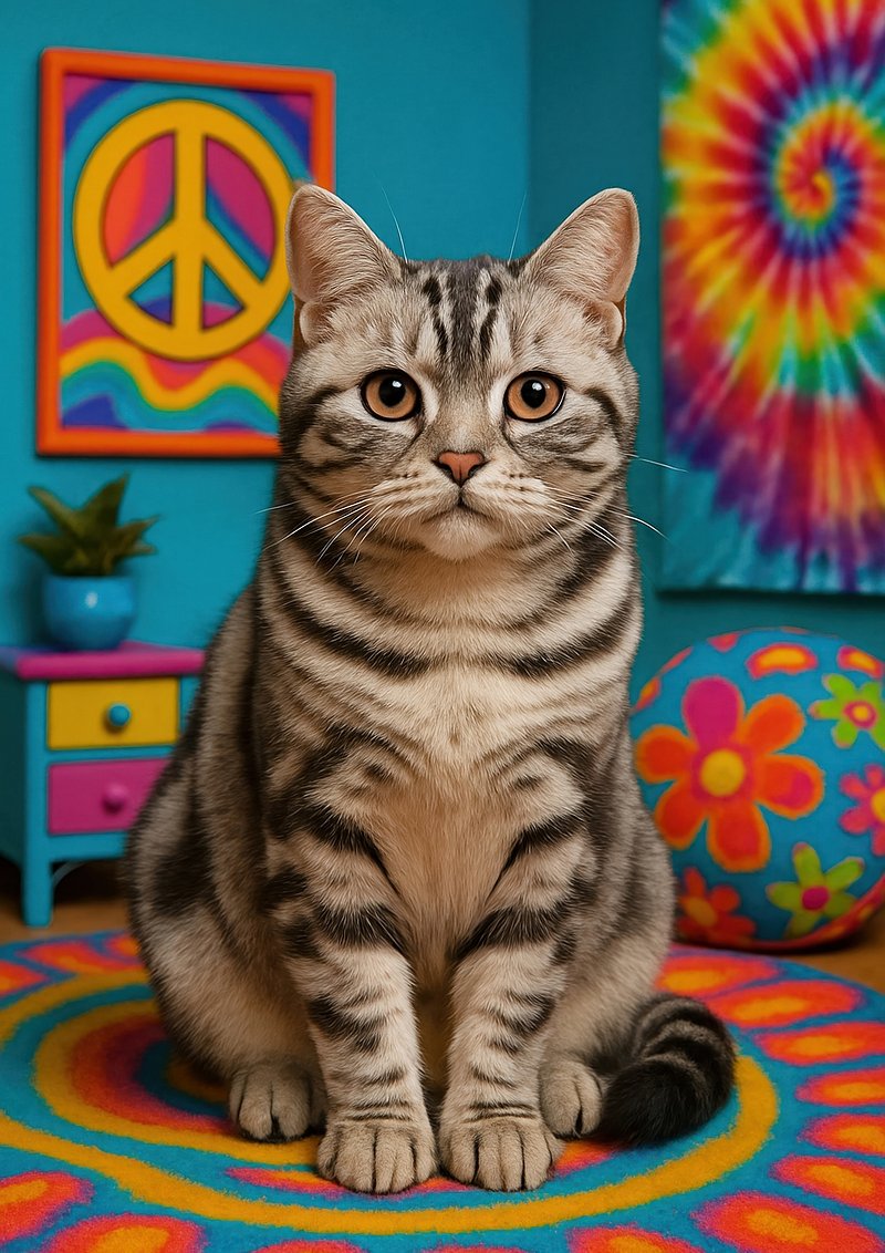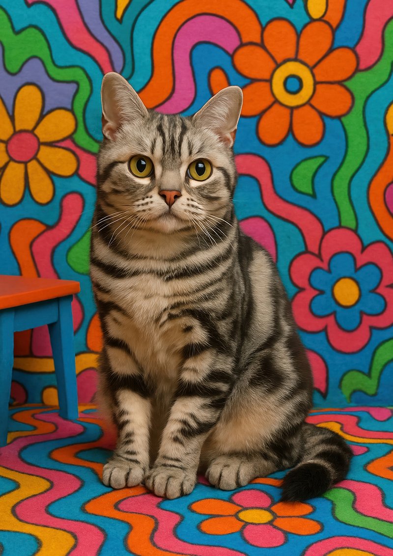 Colorful cat in psychedelic room. https://www.rawpixel.com/image/17872007/colorful-cat-psychedelic-roomView license