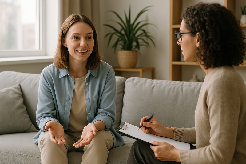 Woman in a rehab session https://www.rawpixel.com/image/2027517/woman-expressing-her-feelingsView license