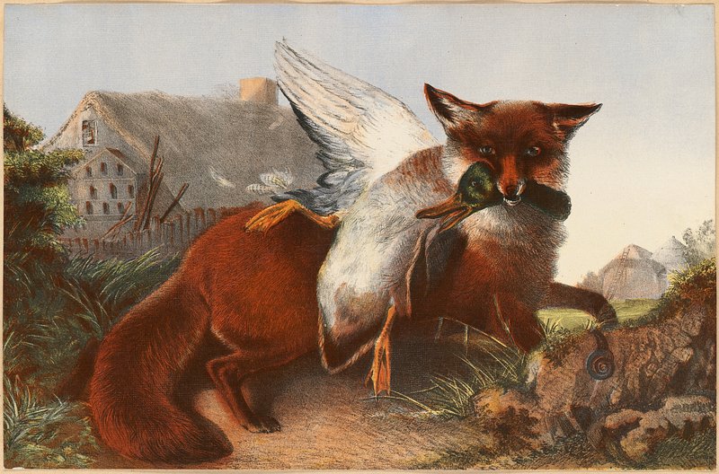 Red fox / from nature and on stone by T. Doughty ; Childs Lith. by Thomas Doughty (1793–1856) https://www.rawpixel.com/image/7690561/image-fox-public-domain-and-chickenFree Image from public domain license