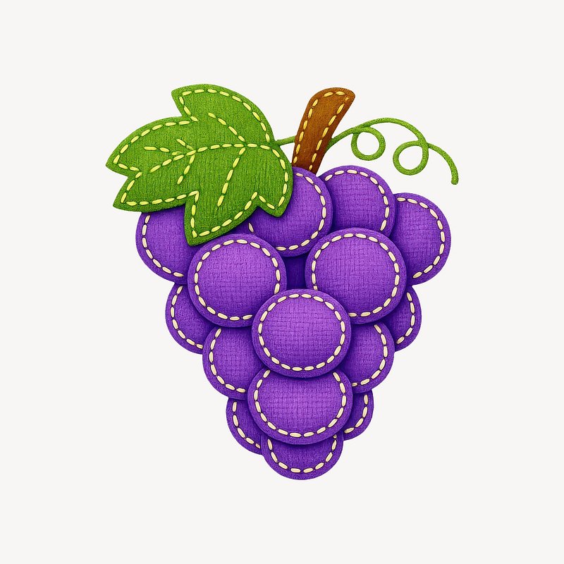 Vibrant stitched grape illustration https://www.rawpixel.com/image/25793654/vibrant-stitched-grape-illustrationView license