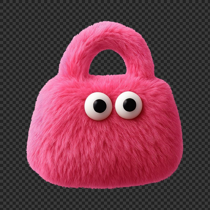 PNG Fuzzy pink handbag with eyes. https://www.rawpixel.com/image/24580467/png-fuzzy-pink-handbag-with-eyesView license