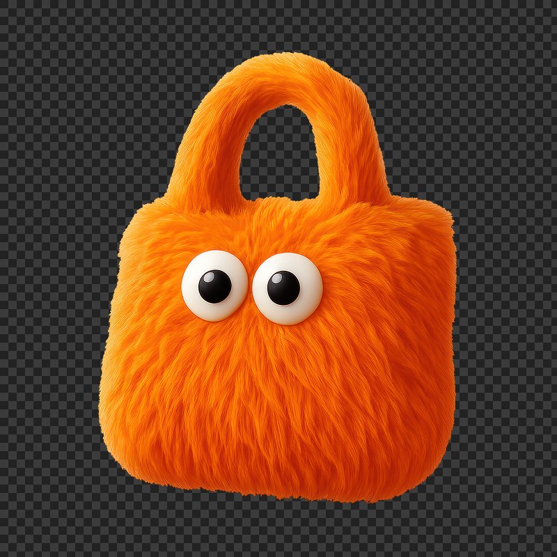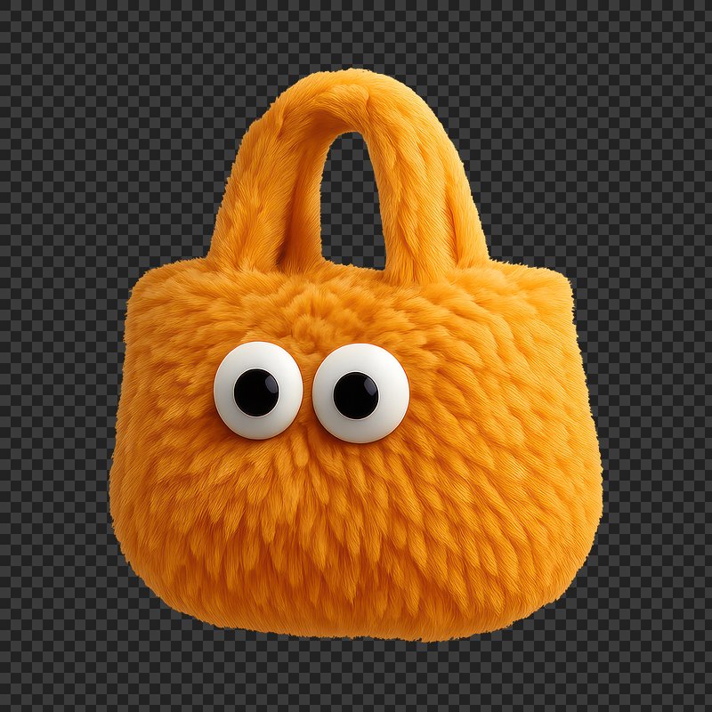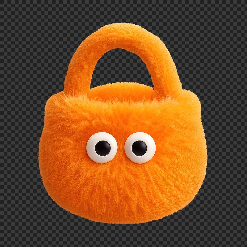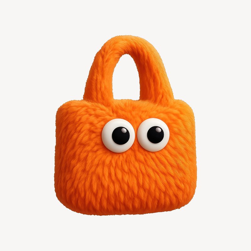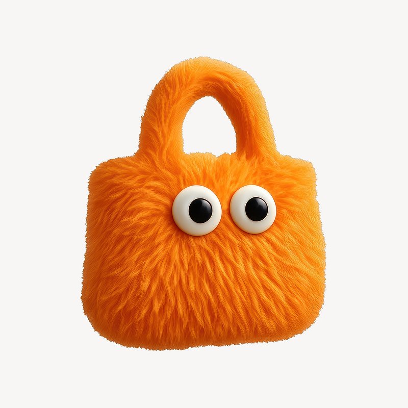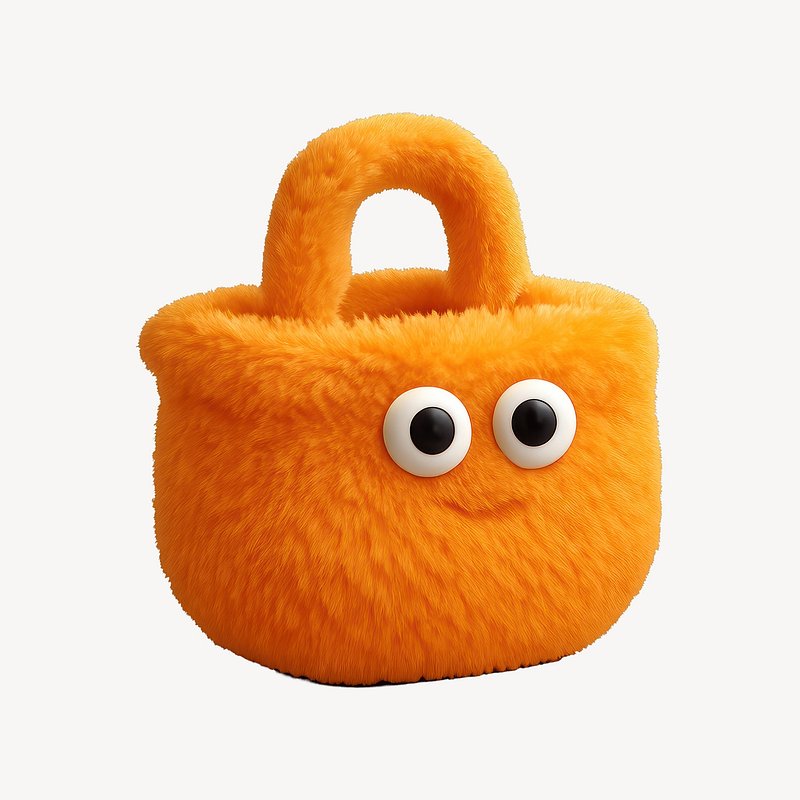 Fluffy orange handbag with eyes. https://www.rawpixel.com/image/24711626/fluffy-orange-handbag-with-eyesView license