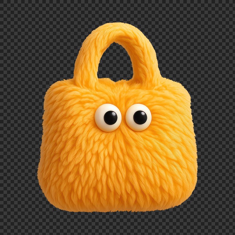 PNG Playful fuzzy handbag with eyes. https://www.rawpixel.com/image/24630021/png-playful-fuzzy-handbag-with-eyesView license